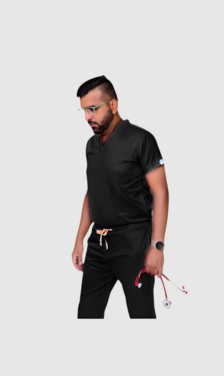 This is one of our top products, featuring antimicrobial and anti-odor properties. It's an all-season, very comfortable scrub with a slight sheen in the fabric, making it a favorite choice for surgeons everywhere. The scrub shirt is a well-designed, unisex V-neck, while the pajama has two pockets, soft elastic, and a tie for a perfect fit and enough space to carry essentials.