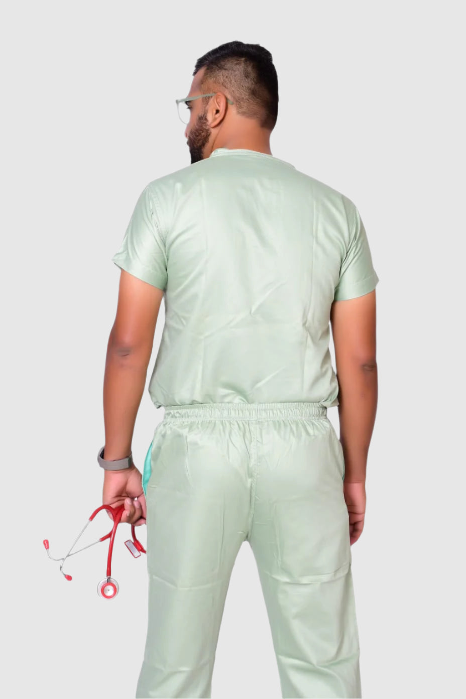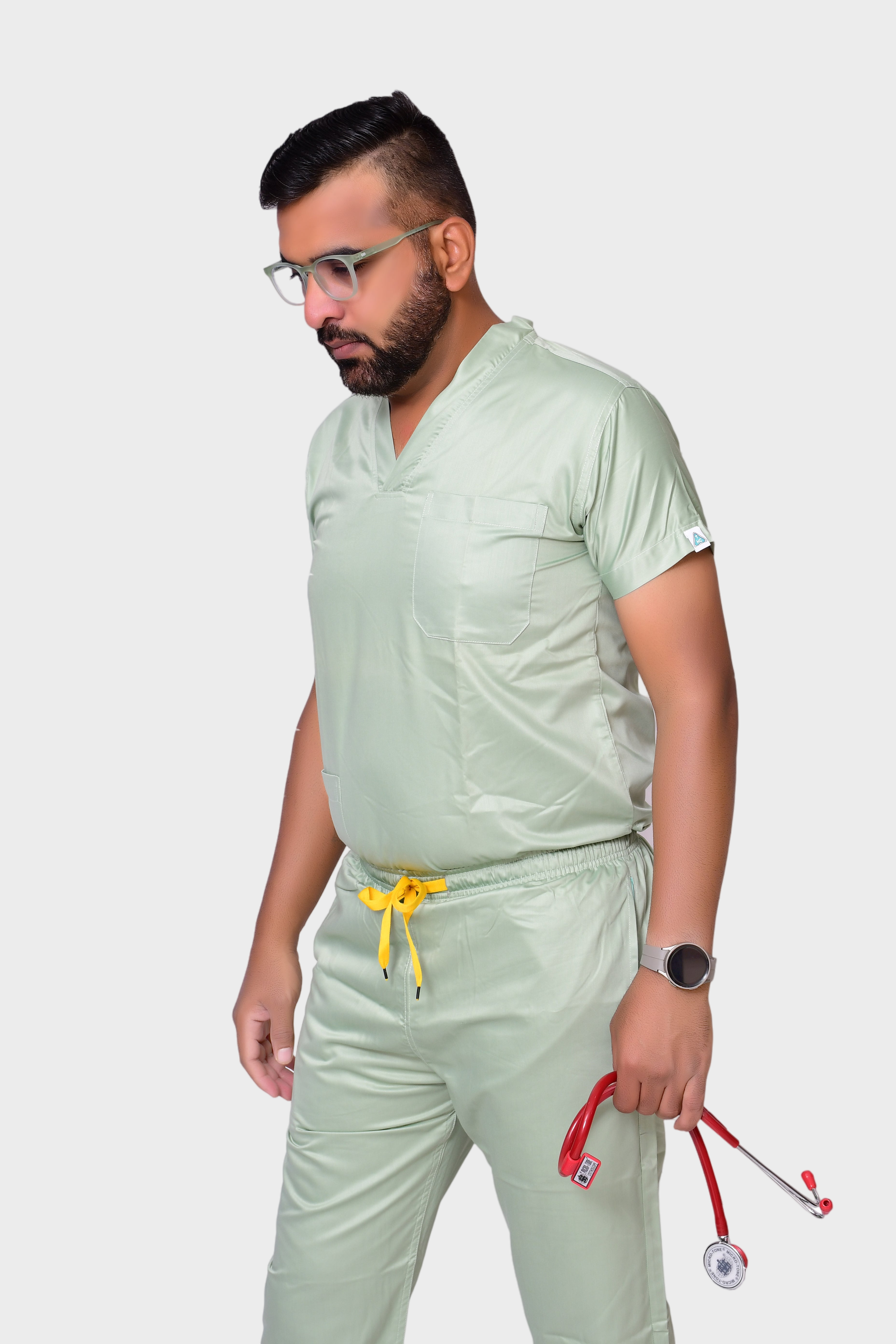 This is one of our top products, featuring antimicrobial and anti-odor properties. It's an all-season, very comfortable scrub with a slight sheen in the fabric, making it a favorite choice for surgeons everywhere. The scrub shirt is a well-designed, unisex V-neck, while the pajama has two pockets, soft elastic, and a tie for a perfect fit and enough space to carry essentials.