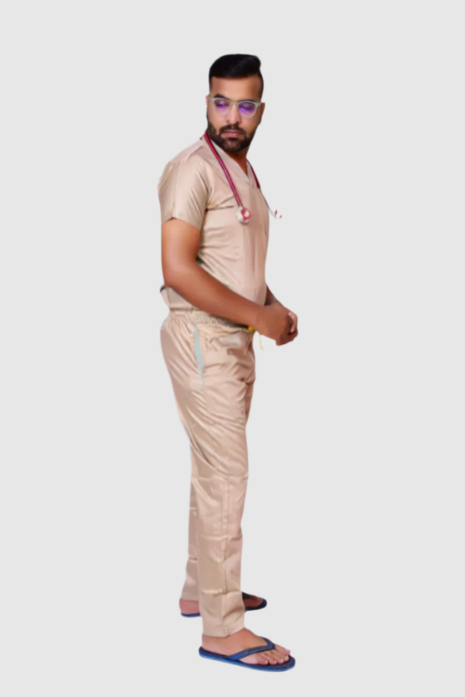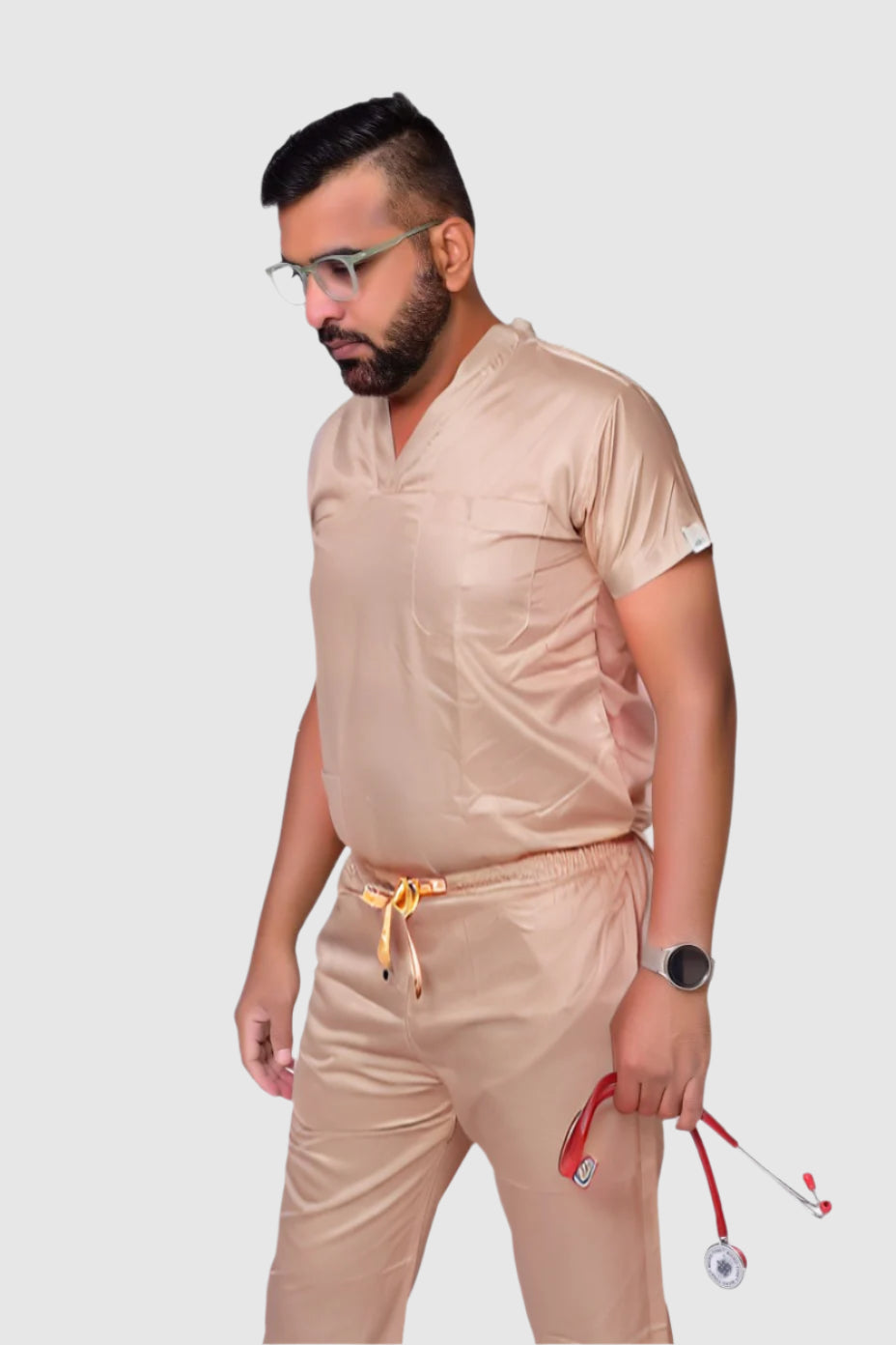 This is one of our top products, featuring antimicrobial and anti-odor properties. It's an all-season, very comfortable scrub with a slight sheen in the fabric, making it a favorite choice for surgeons everywhere. The scrub shirt is a well-designed, unisex V-neck, while the pajama has two pockets, soft elastic, and a tie for a perfect fit and enough space to carry essentials.