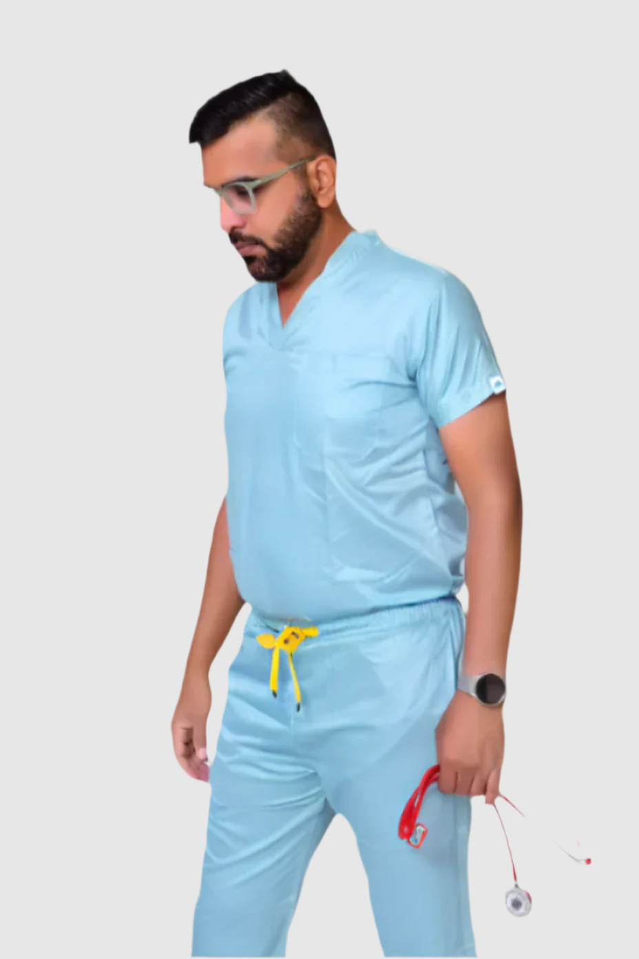This is one of our top products, featuring antimicrobial and anti-odor properties. It's an all-season, very comfortable scrub with a slight sheen in the fabric, making it a favorite choice for surgeons everywhere. The scrub shirt is a well-designed, unisex V-neck, while the pajama has two pockets, soft elastic, and a tie for a perfect fit and enough space to carry essentials.